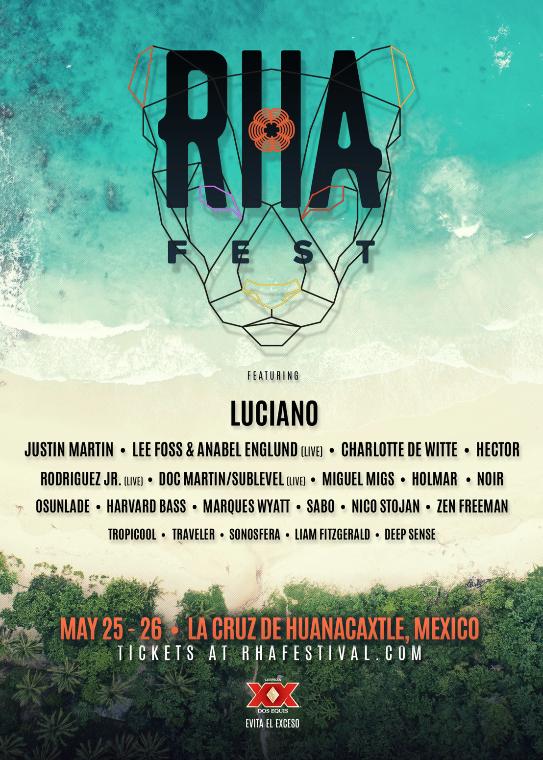 Returning to Mexico is the favorite music gathering of house and techno devotee’s, RHA Festival. Increasing the excitement for Memorial Day Weekend to arrive, RHA announces the phase two music lineup. This phase consists of rising acts of tomorrow like the local RHA resident DJ Sonosfera, Liam Fitzgerald, Miguel Migs, and Yoruba Records founder Osunlade. These emerging artists will be playing alongside with legends like Luciano, Harvard Bass, Holmar, Doc Martin, Rodiguez JR and many more. Check out the full line up below!